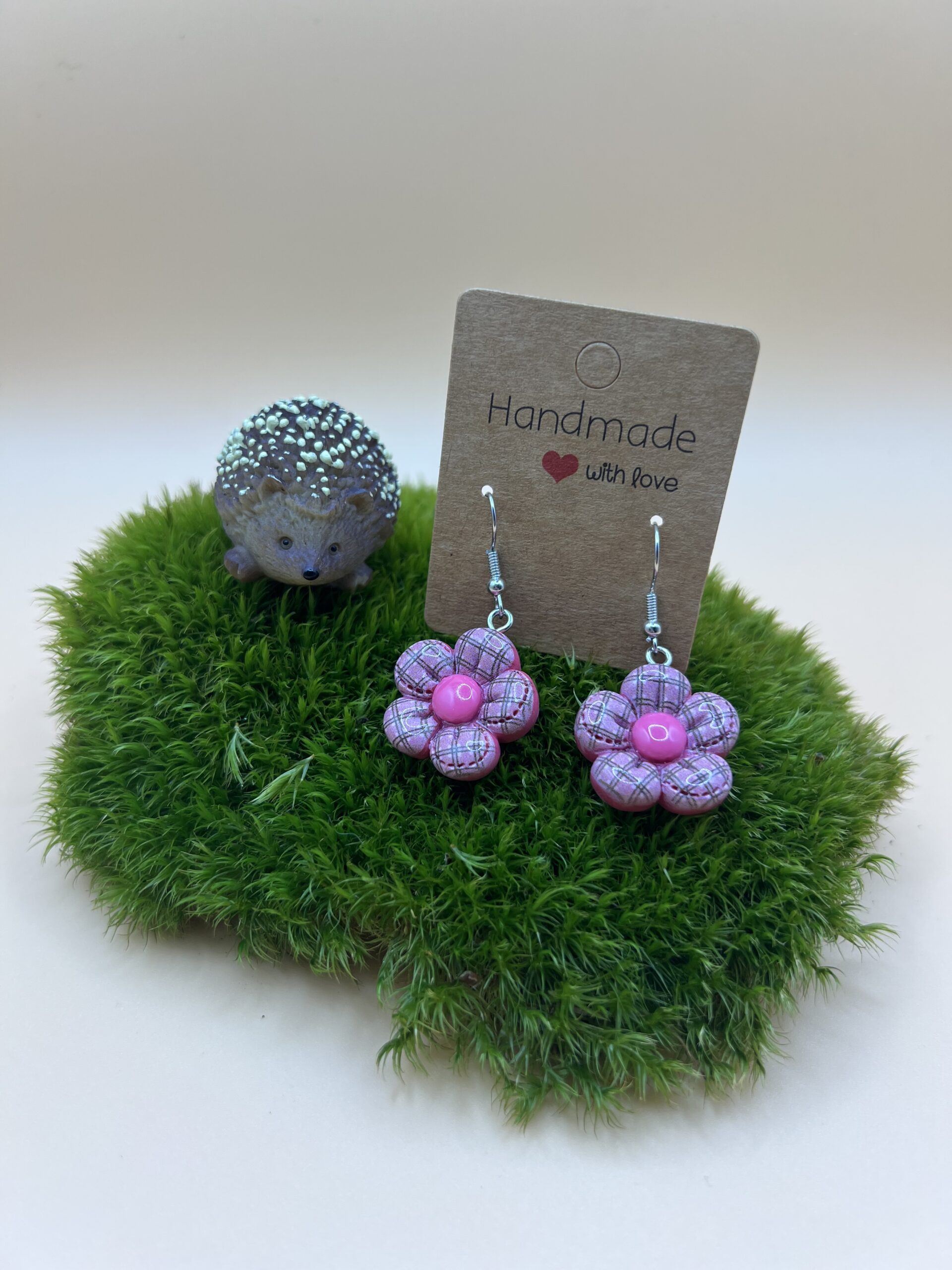 Boucles d’oreilles en forme de fleur violettes au cœur rose