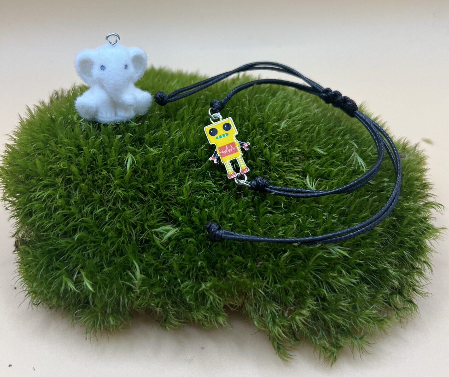 Réalisé avec un cordon résistant et réglable grâce à ses nœuds coulissants, ce bracelet s’adapte à tous les poignets d’enfants.